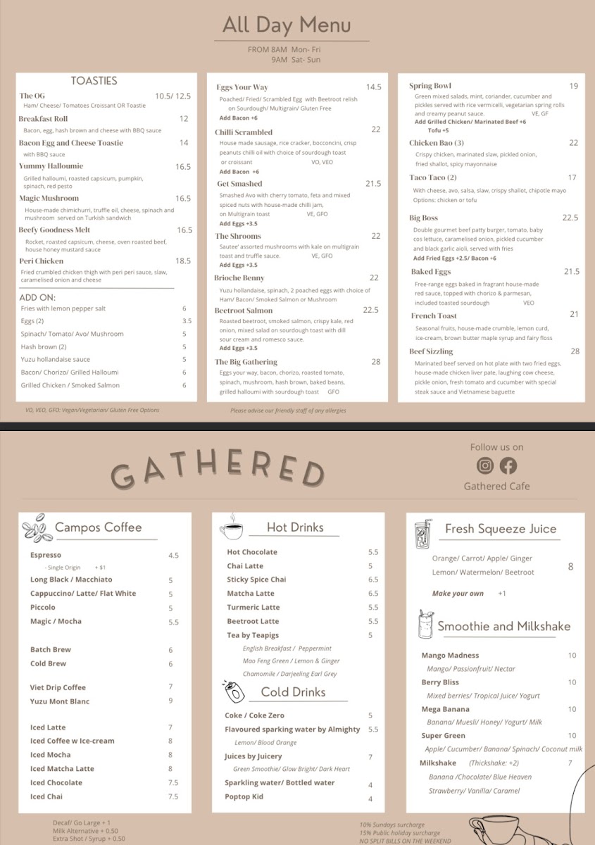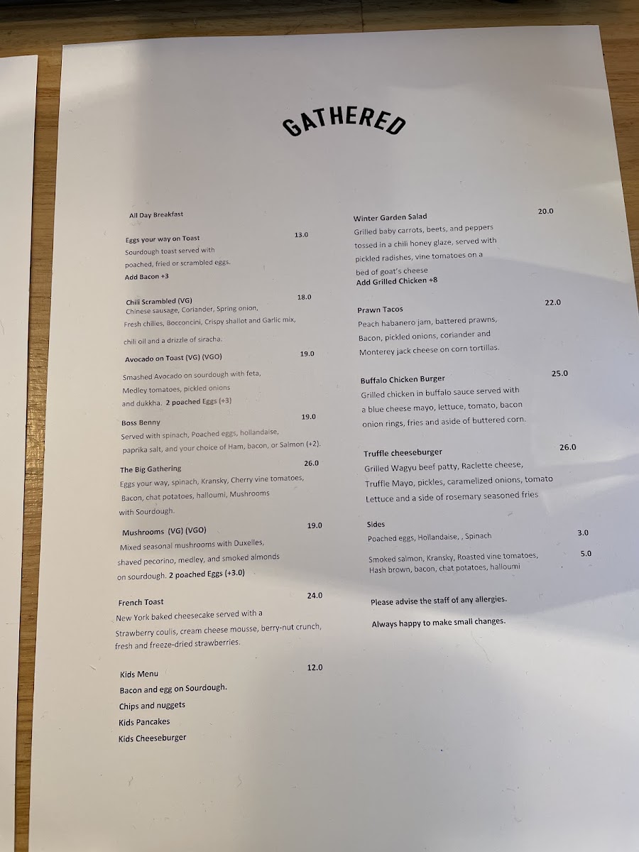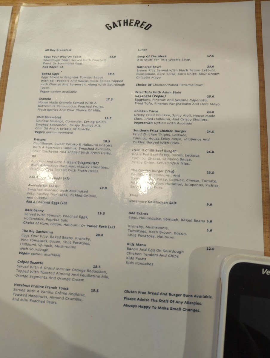 Gathered Cafe Menu
